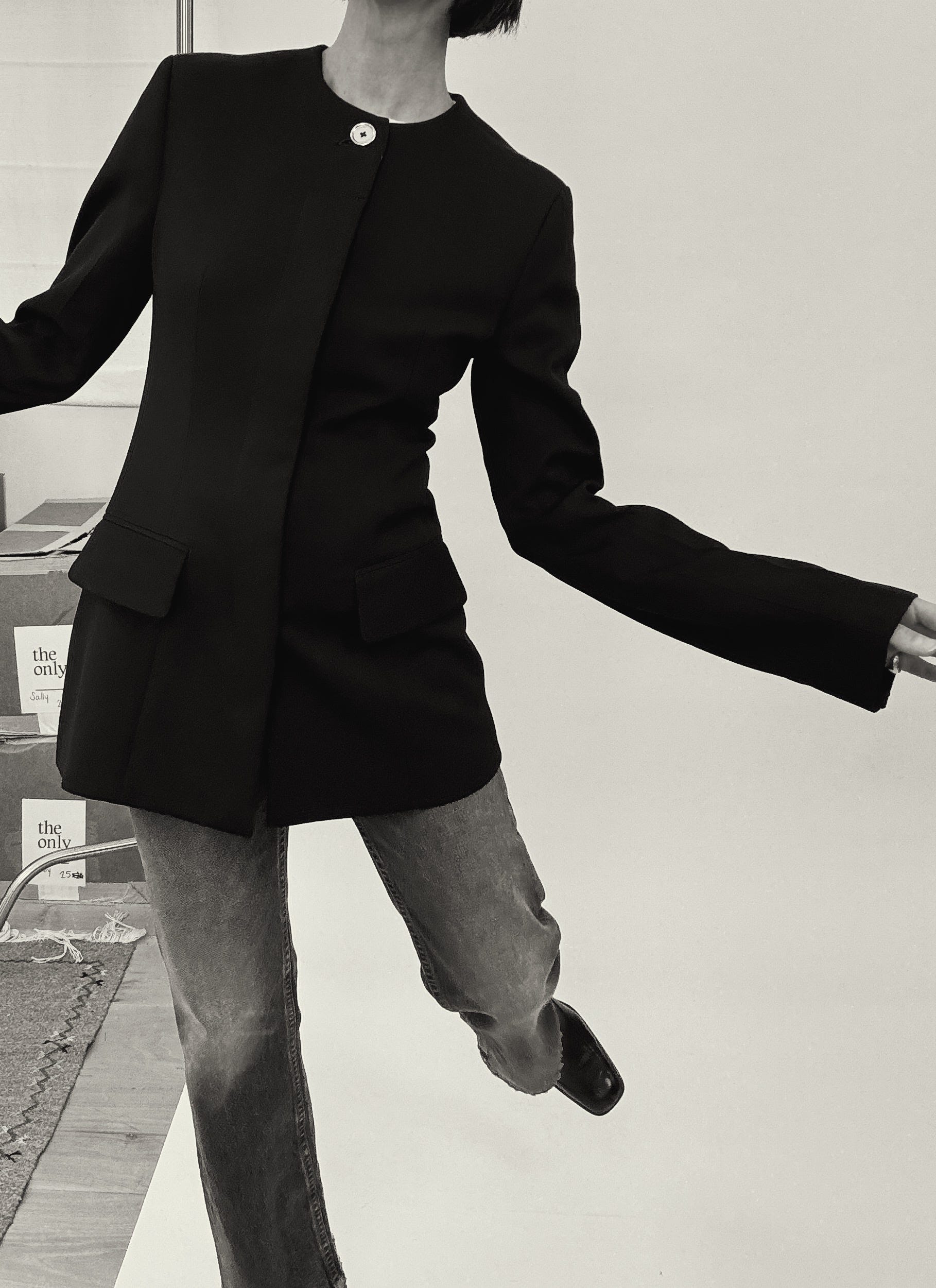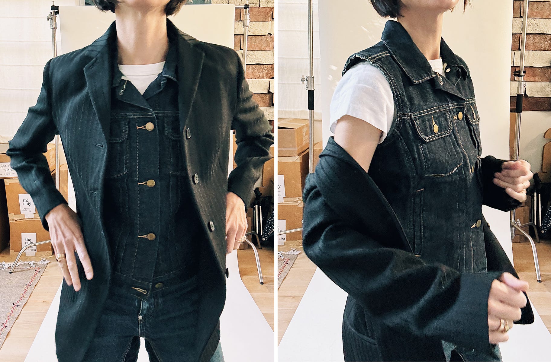 When I was in my twenties I loved wearing a blazer with jeans. It made me feel grown-up and, working in fashion, it worked for work without feeling too worky. At the time, my blazer of choice was by Junya Watanabe for Commes des Garçons – true navy with a heavily darted waist, shoulder pads, and ribbed inserts running half way down the sleeves. The jeans I’d wear with my Junya jacket were just-as-stiff Proenza Schouler straight legs. No stretch. A clean wash. It was 2013 and they cost a whopping $275.