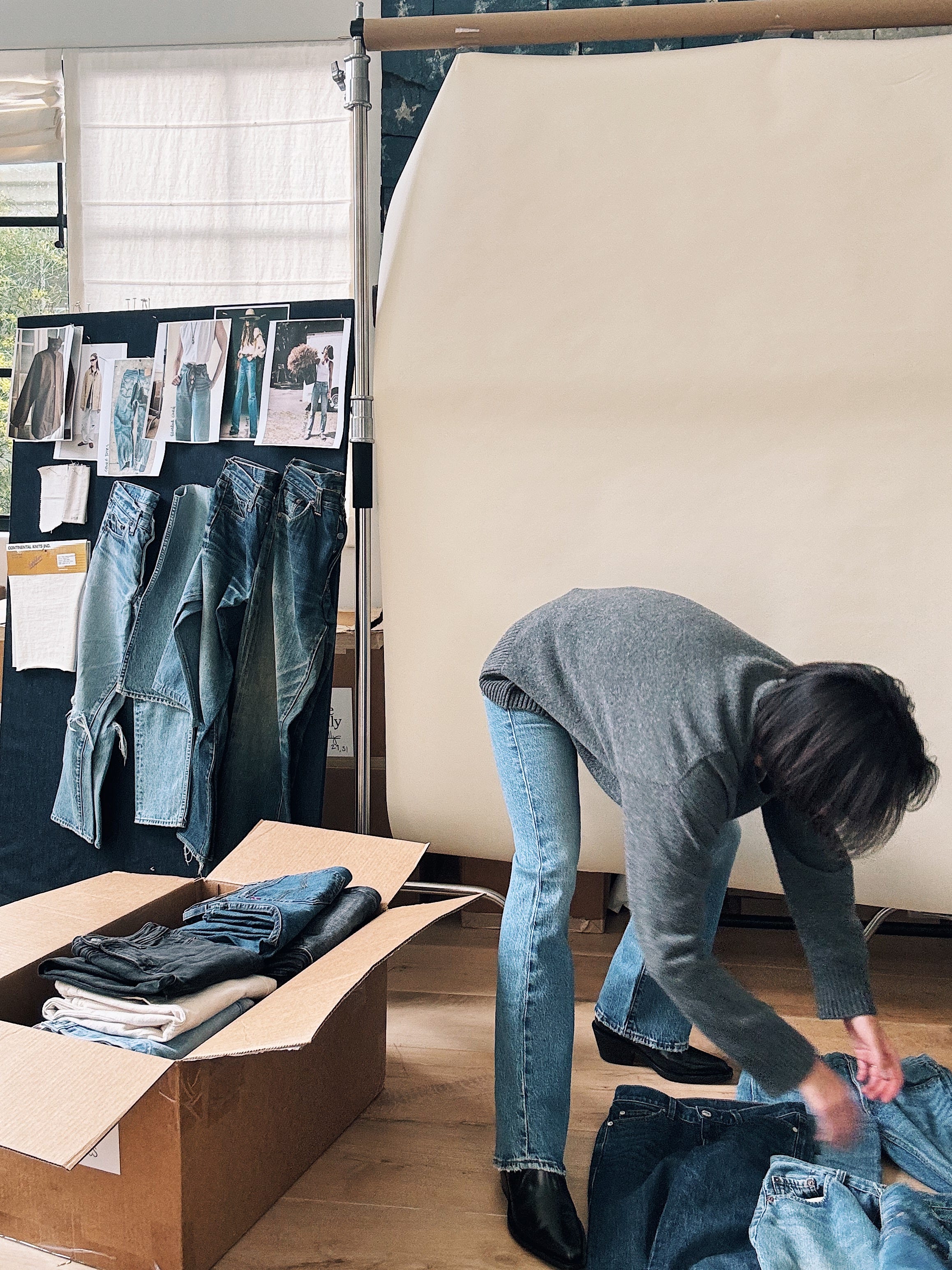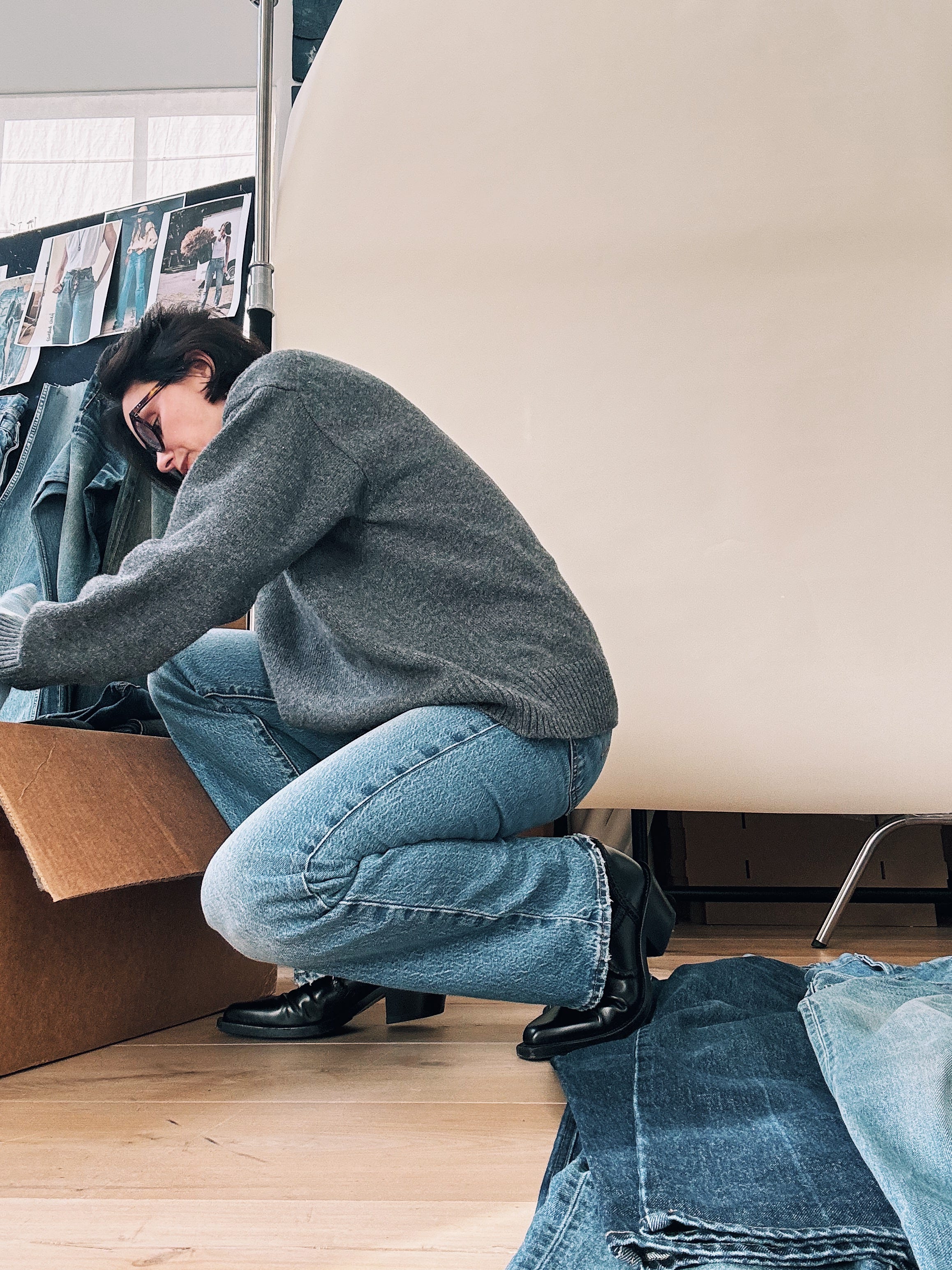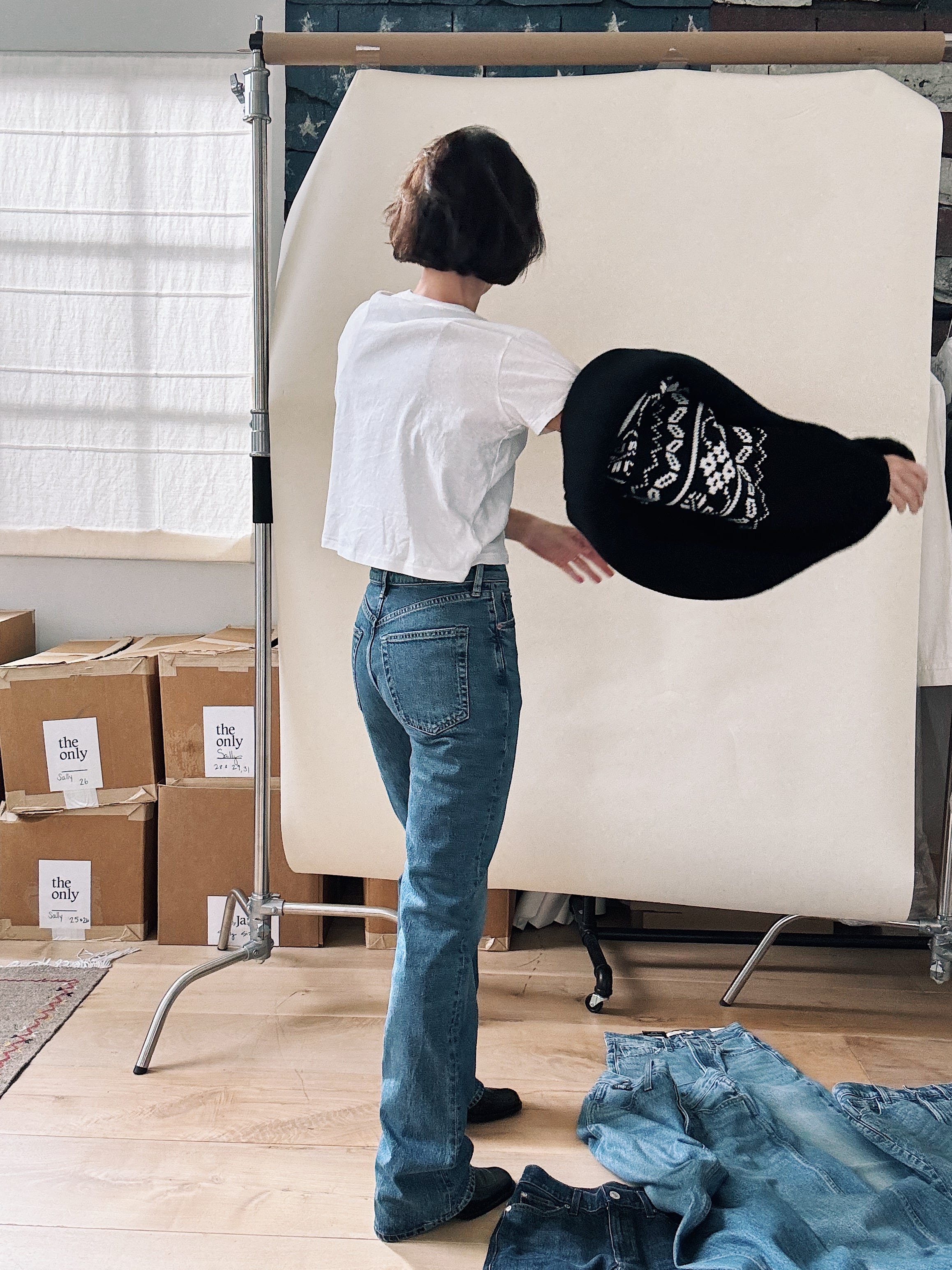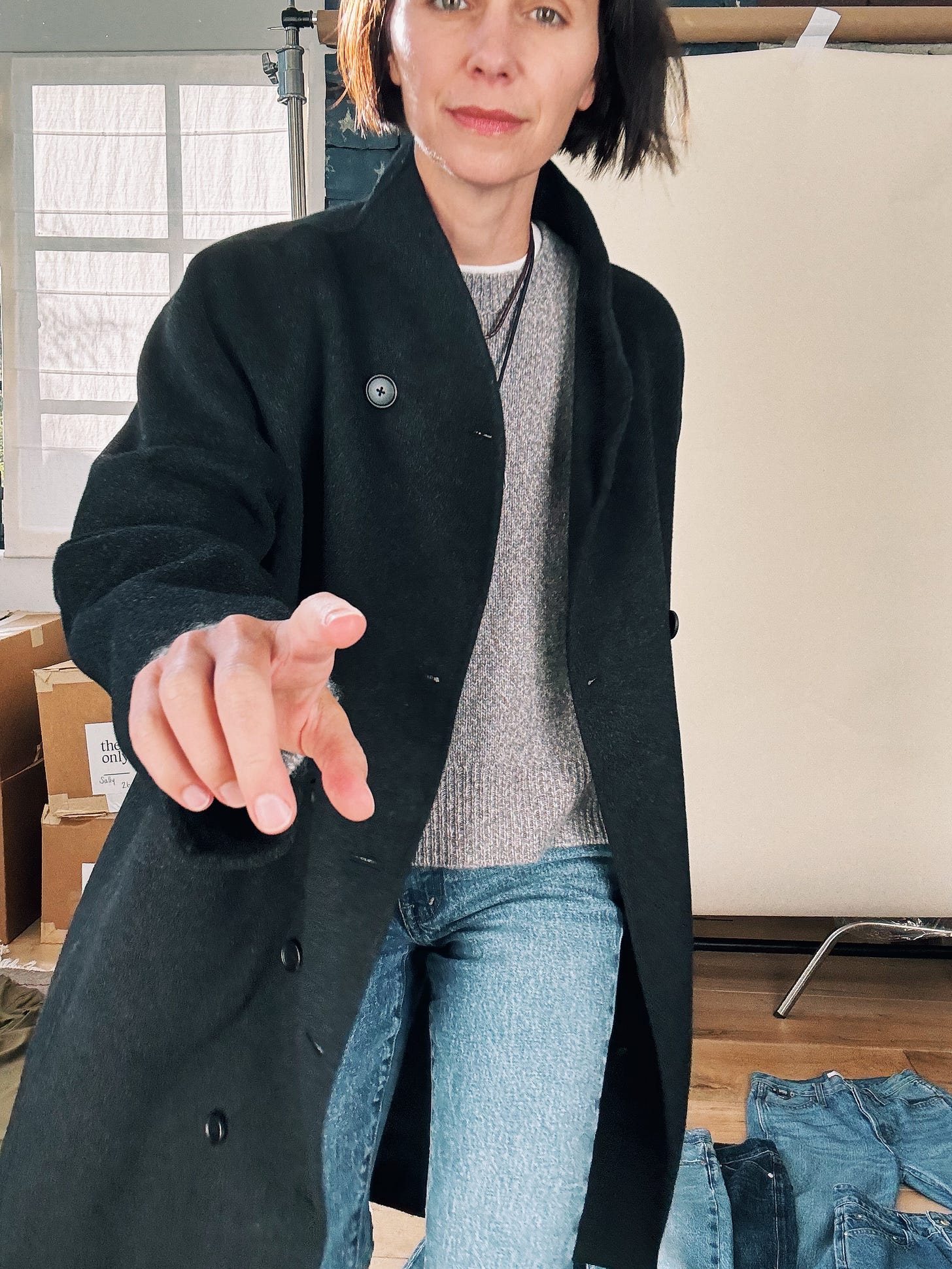 I ran out of seamless paper - the big white backdrop I typically hang for my photos – and because I didn’t have time this week to replace it, the vibe of my letter is a little bit different today. The truth is: This is what my studio looks like most of the time. And this – jeans with boots and a sweater over my favorite tee – is what I love wearing to work right now.