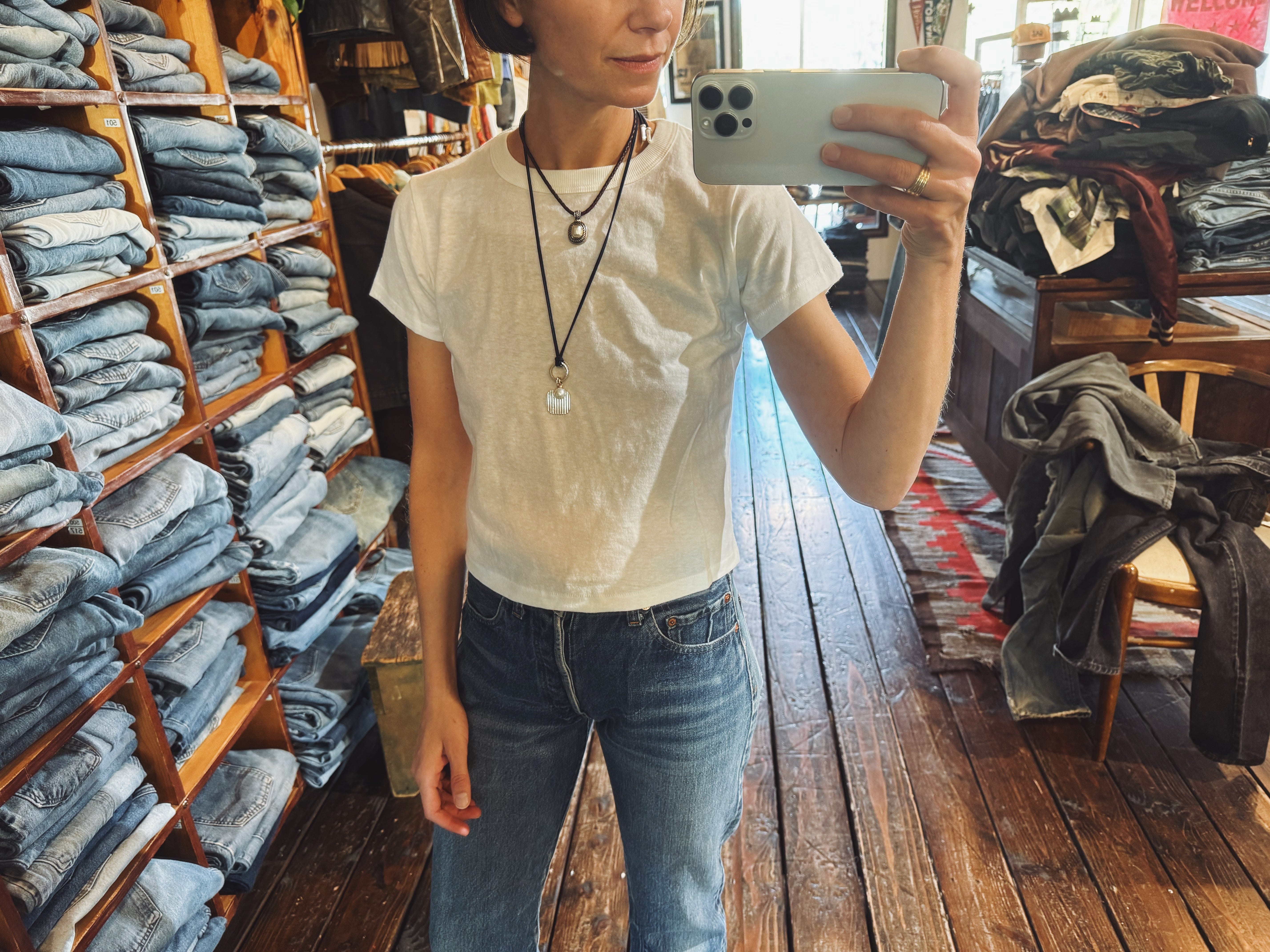 It might sound crazy, but I have the Topanga Tee in three sizes – XS, S, and M. They all fit well, which is to say, don’t overthink the sizing. Initially, I thought the M was perfect. Loose and easy. Then Stephan told me to try an XS – with a pair of 1981 selvedge 501s (that I bought because I can’t walk away from Made in USA Levi’s that feel like a hug from heaven) – and, Voila! “That’s the fit intent,” he told me about the shrunken XS. I mean, sold.