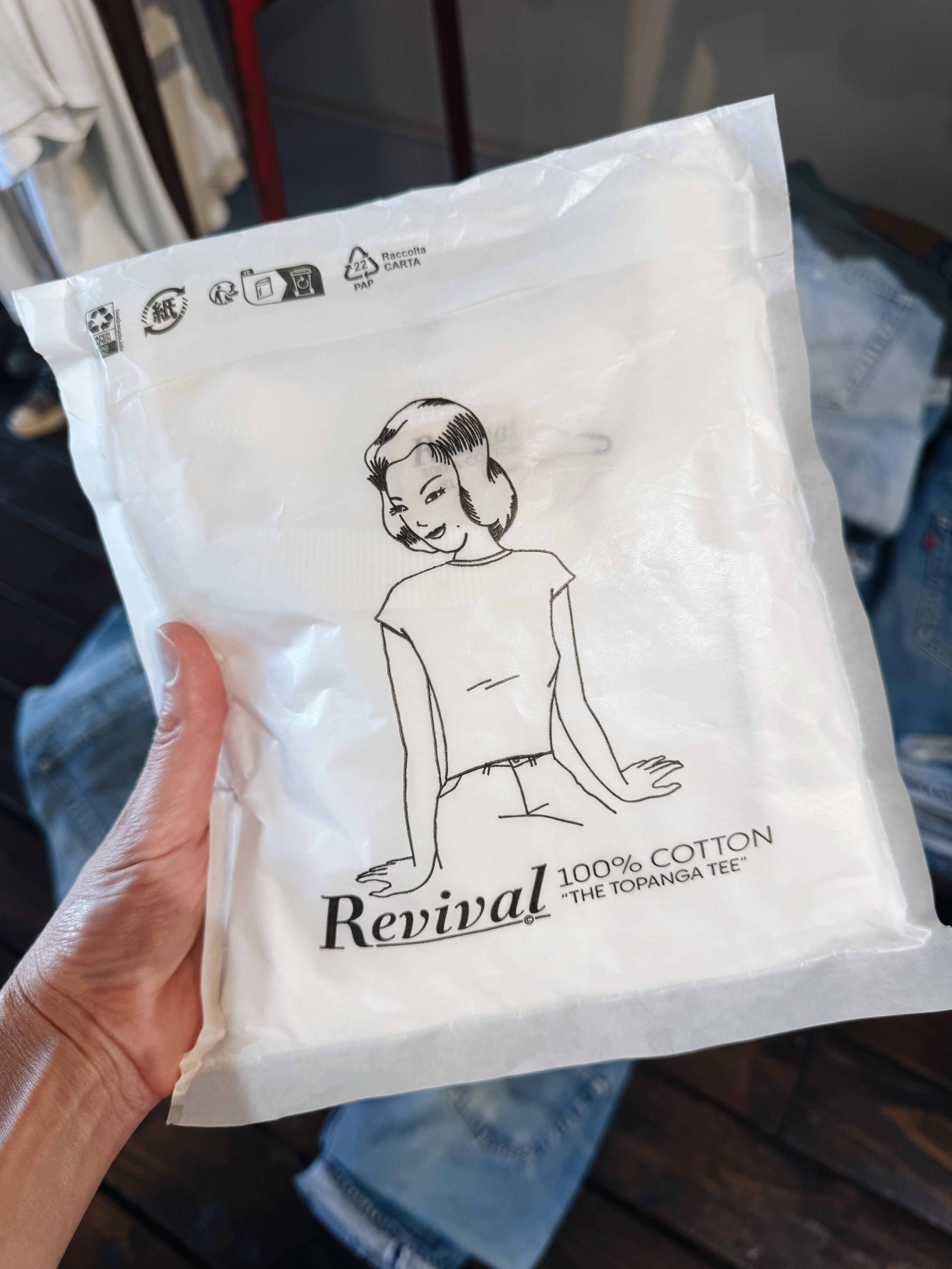 It’s called the Topanga Tee and there are a lot of things that make it special – the length of it hits the waistline on a pair of vintage 501s perfectly; the back of it pulls casually away from the body; the sleeves cap the shoulders without slanting too much; the ribbing around the neckline is broad and boyish. I love the fabric – 100% cotton. “It’s not too sheer. It’s just enough,” Stephan explained. He’s totally right. (Follow @made.revival for updates on inventory.)