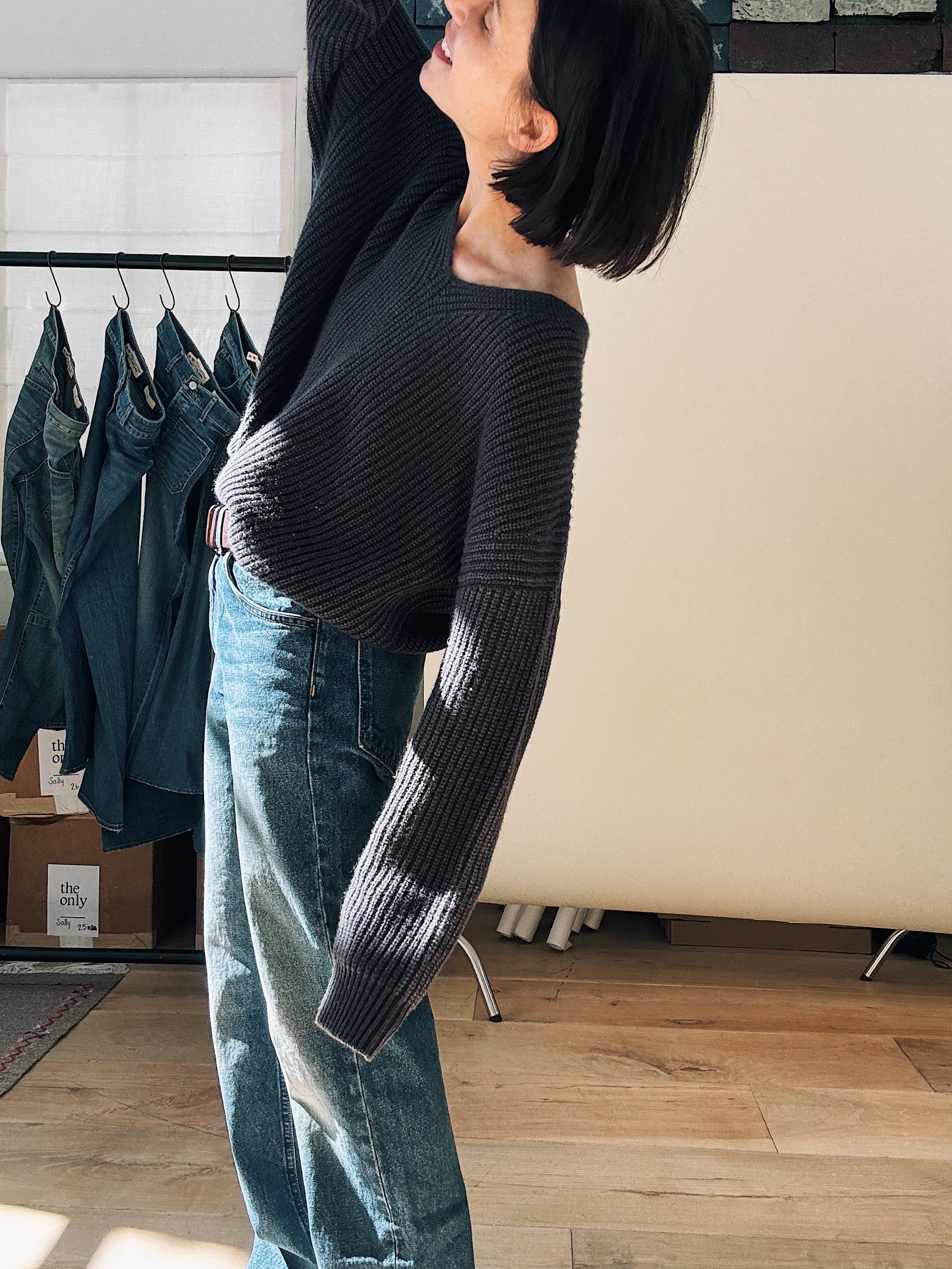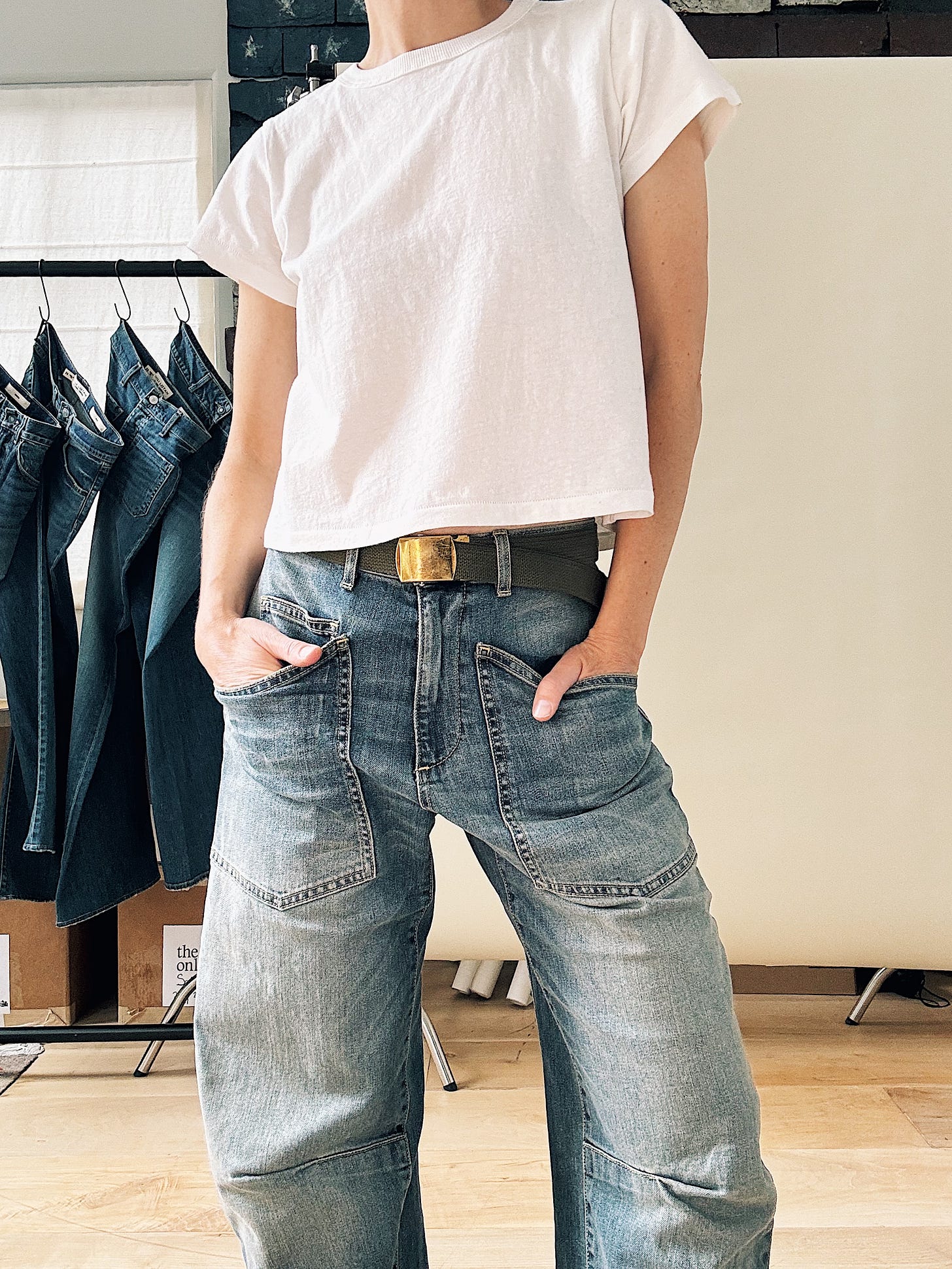 Big, back pockets that drop way below the butt remind me of how the boys in high school wore their jeans in the 90s, hanging off their bodies to show their Calvin Kleins. It was sexy then and these jeans are sexy now. They feel anti-everything (fit, formality, convention), and ready to rebel – an authentic message for denim, any day. I don’t give a f*ck in these jeans. Is that why everyone loves them so much? Because they make us feel free?